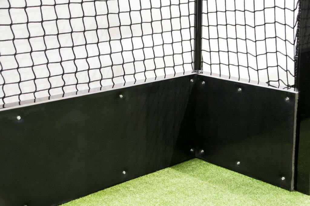 De kantplank is in de standaard uitvoering gemaakt van watervast betonplex, wat zorgt voor geluidsoverlast bij balinslag. Dit kan echter verholpen worden door ons speciaal ontwikkelde geluiddempende materiaal te laten monteren op de kantplank. Dit kost €200 extra per doel.